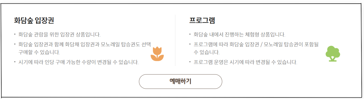 화담숲은 성수기(봄, 가을)에는 사전 예약제로 운영되며, 인터넷을 통해 날짜 및 시간을 지정해 입장권을 구매해야 합니다.